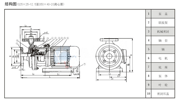 S型玻璃鋼泵,其過流部件為聚乙烯醇縮丁醛、改性酚醛玻璃纖維材料經(jīng)高溫模壓而成,具有良好的耐腐蝕、耐溫性,該型泵具有重量較輕、強(qiáng)度較高、不易變形等特點(diǎn)。軸封采用機(jī)械密封。