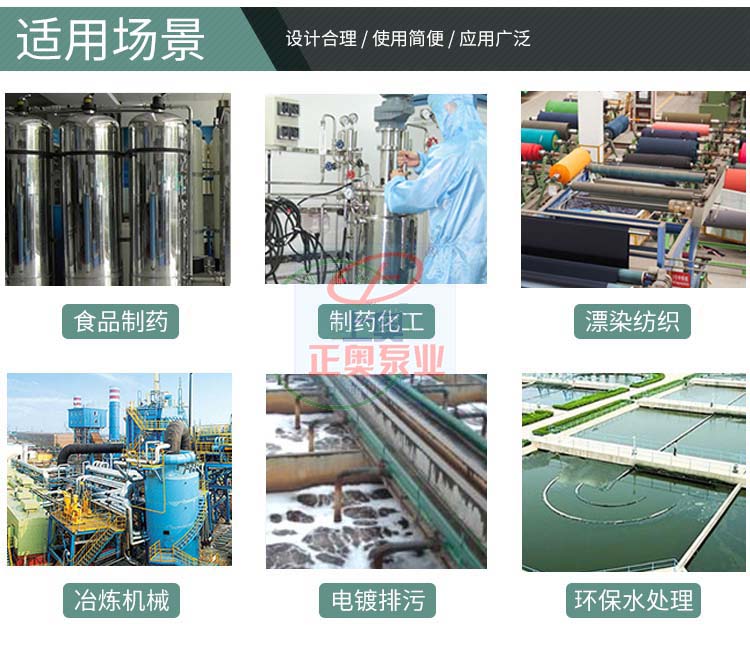 本泵主要用于石化、冶煉、染料、印染、農(nóng)藥、制藥、稀土、皮革等行業(yè),輸送不含固體顆粒、不易結(jié)晶、溫度不高于90℃的各種非氧化性酸(鹽酸、稀硫酸、甲酸、醋酸、丁酸)等腐蝕性介質(zhì)。