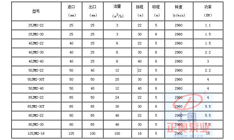 50JMZ-40 50 40 12 40 6 4 2900 50JMZ-40