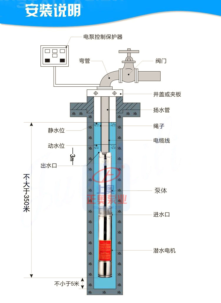 (4)熟悉安裝使用說明書,對新鉆的水井必須進行洗井,清除水中泥砂后,方能安裝QJ型潛水電泵。