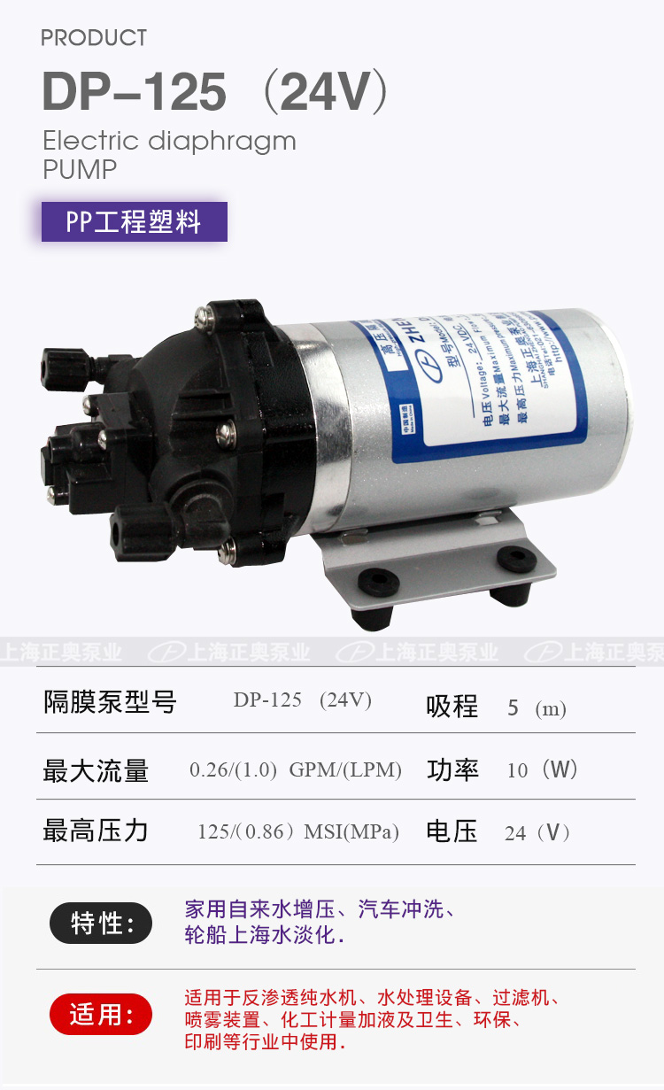 DP微型電動(dòng)隔膜泵適用于家用自來(lái)水增壓、汽車沖洗、輪船上海水淡化,DP隔膜泵適用于反滲透純水機(jī)、水處理設(shè)備、過(guò)濾機(jī)、噴霧裝置、化工計(jì)量加液及衛(wèi)生、環(huán)保、印刷等行業(yè)中使用。