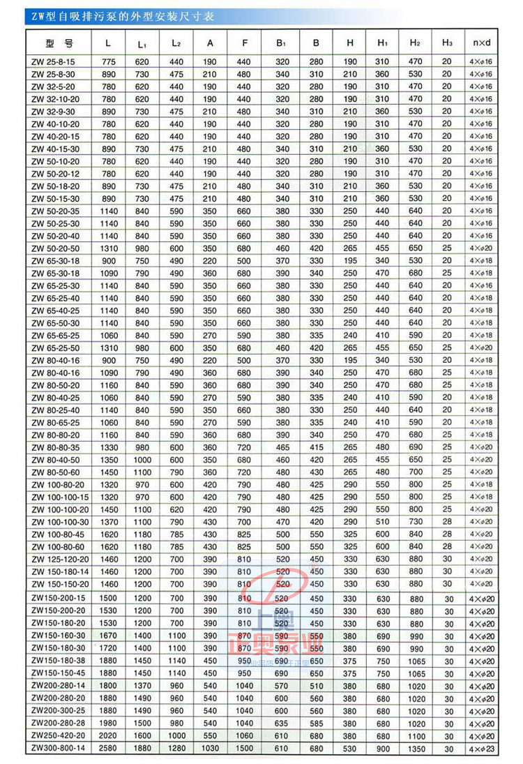 三、ZW型自吸式無堵塞排污泵技術(shù)參數(shù):