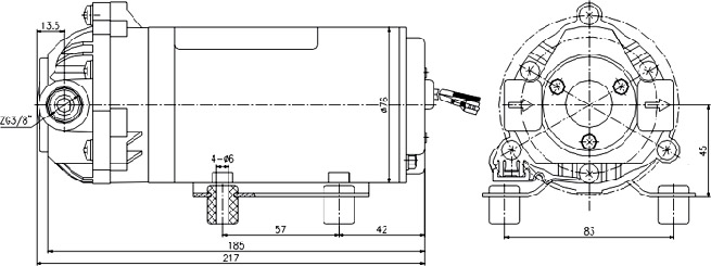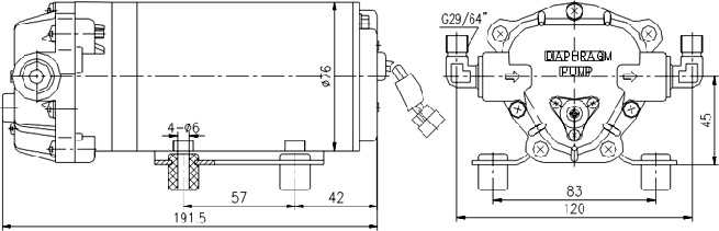 型號(hào) 電壓 (VDC) 電流 (A) 流量 GPM/(LPM) 轉(zhuǎn)速 (r/min) 壓力 psi/(MPa) 吸程 (m) 調(diào)壓開(kāi)關(guān) (MPa) 功率 (W)