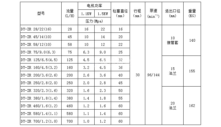 三、DY-ZR型液壓隔膜式計(jì)量泵參數(shù)選型: