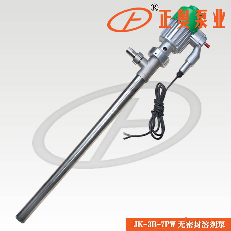 上奧牌JK-3B-7W防型油桶溶劑泵(油桶泵)是正奧泵業(yè)公司自主研制而成,各項(xiàng)技術(shù)指標(biāo)均能達(dá)到樣機(jī)水平,并在樣機(jī)基礎(chǔ)上開發(fā)了不同使用場(chǎng)合不同抽吸液體的派生產(chǎn)品,該系列泵為輕便型管式軸流泵,具有效率高,使用、維護(hù)方便等特點(diǎn)。正奧JK-3B-7W系列不銹鋼電動(dòng)插桶泵采用無軸封設(shè)計(jì),泵管為不銹鋼或工程塑料材質(zhì),配用防爆型新型電機(jī),是溶劑類化工液體的理想桶用泵。電動(dòng)抽液泵概述:JK-3B-7W電動(dòng)不銹鋼抽液泵(油桶泵、插桶泵)系列泵為輕便型管式軸流泵,具有效率高,使用、維護(hù)方便等特點(diǎn)。JK-3B-7W系列電動(dòng)抽液泵可以直接插入物料桶(最大適用于符合GB/325-1991標(biāo)準(zhǔn)的鋼桶)中抽取桶中液體?奢斔透鞣N油料、帶腐蝕性化學(xué)藥水、其他液體。廣泛用于化工、石油化工、精細(xì)化工、染料化工、環(huán)保、水處理、醫(yī)藥、食品等企事業(yè)單位部門輸送酸、堿、鹽、油品、飲料等介質(zhì)及抽吸各種低粘度無顆粒液體。JK-3B-7W系列電動(dòng)抽液泵同時(shí)適用于中小型油田、油庫、煉油廠、加油站、農(nóng)機(jī)站、企事業(yè)單位、車隊(duì)、車輛船舶等,是輸送溶劑類、汽油、煤油、柴油、輕質(zhì)燃油的理想工具。工作溫度:-14~100℃。可輸送各種油料、帶腐蝕性化學(xué)藥水、其他液體。