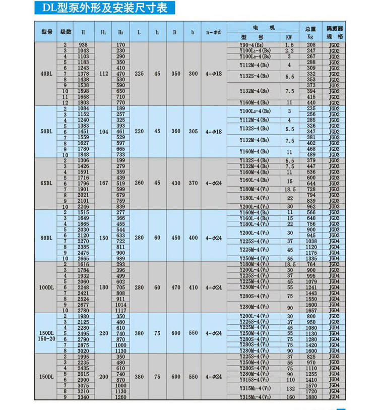 五、DL系列立式多級離心泵選型參數(shù):